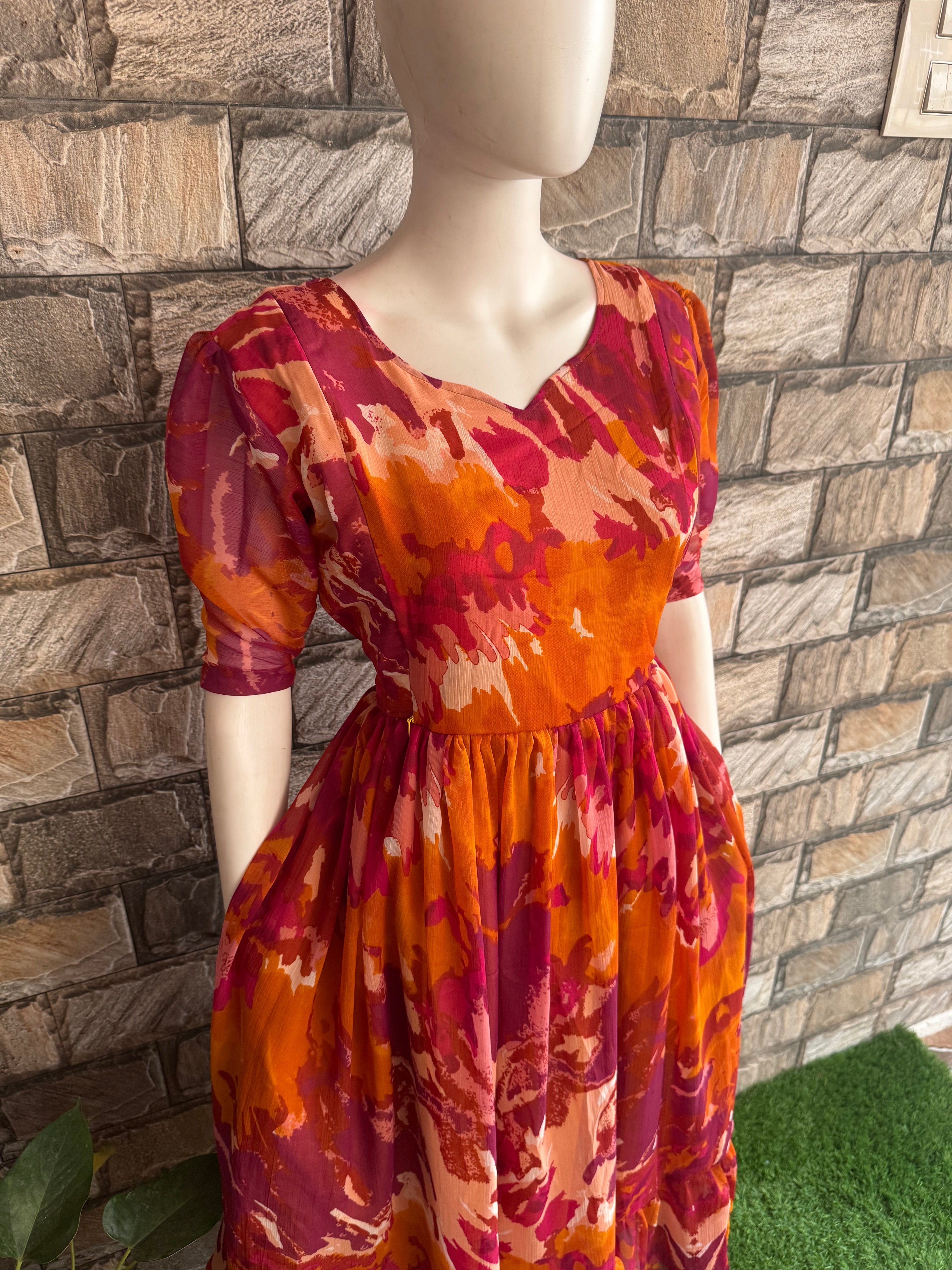 🌸 Fabric: Soft crush Chiffon  with Crepe Lining