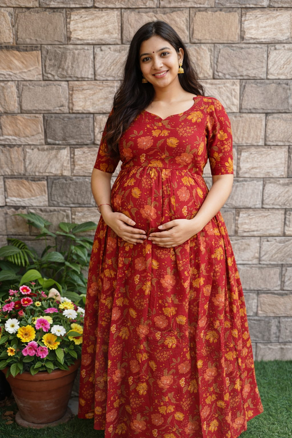 Pale Maroon mul soft cotton Maternity Maxi