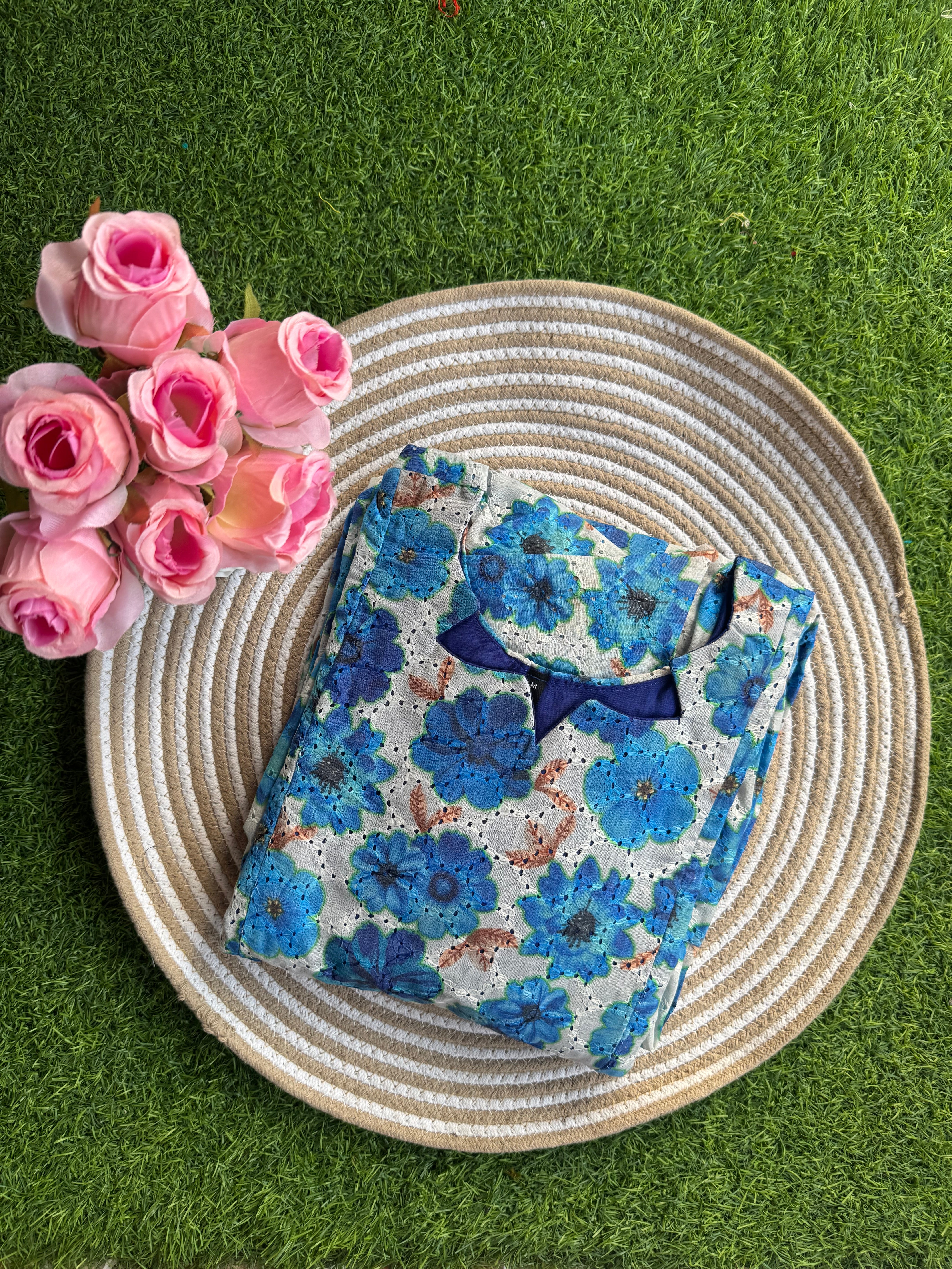 Royal blue Hacoba cotton Maternity maxi